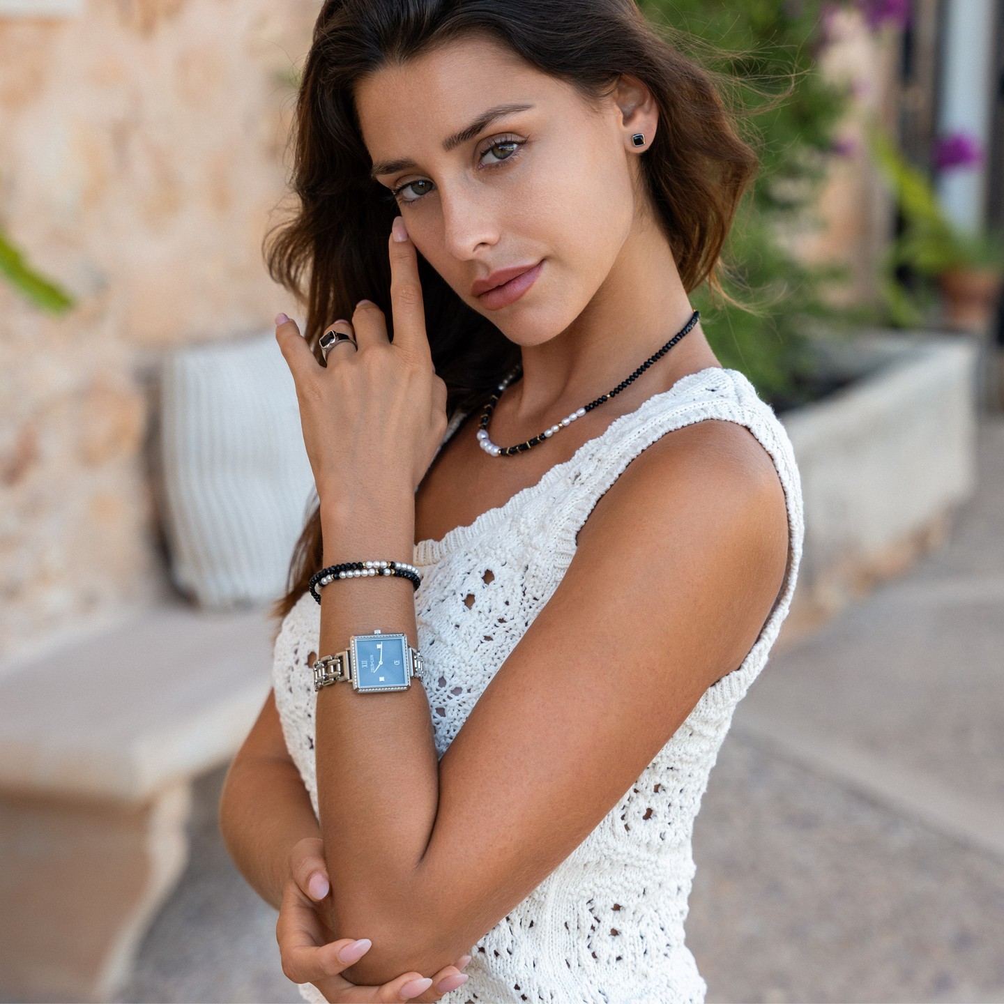 Watch Iconic Square Mother-Of-Pearl Silver Bracelet Leather Cool Blue | COEUR DE LION New