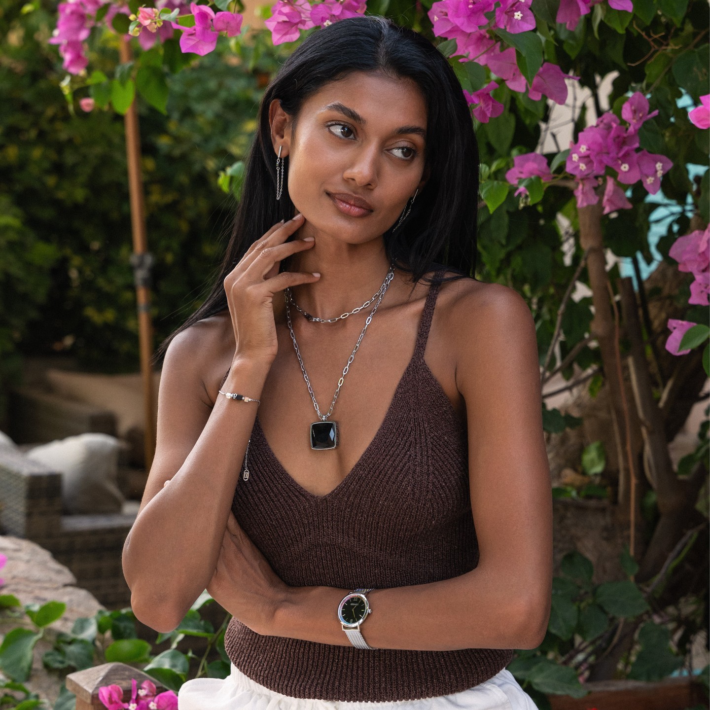 Watch Iconic Square Anthracite Mother-Of-Pearl Milanese Stainless Steel Anthracite | COEUR DE LION Online